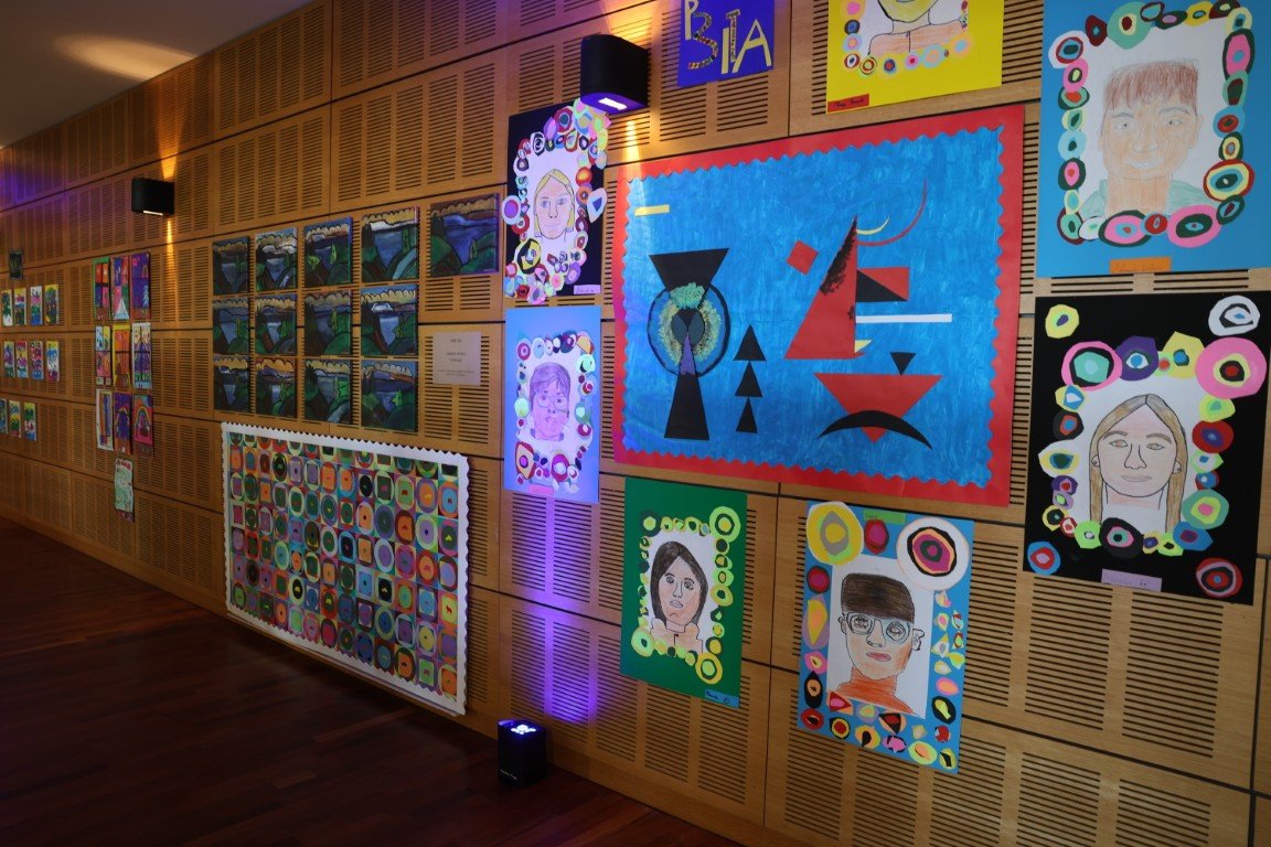 The primary school art exhibition *Imagination Without Boundaries*, organised by Ms Silvana Cigognini and Mr Bernardino Pacheco, offered a true immersion in a rich and inspiring creative world, drawing inspiration from the works of Wassily Kandinsky and Gabriele Münter, iconic figures of the Der Blaue Reiter movement.