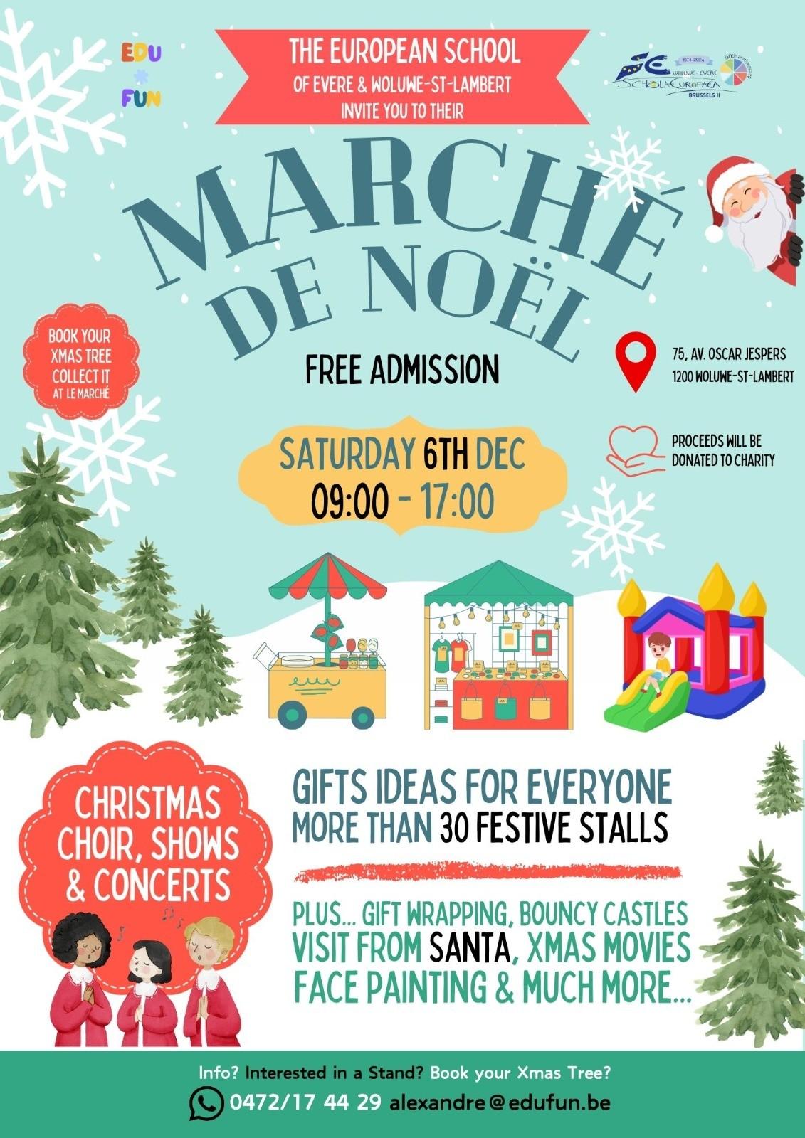 We are happy to invite you all to our big Christmas Market on Saturday 6 December! The programme includes musical performances, more than 30 stalls with a thousand and one gift ideas to prepare for your celebrations, numerous delicacies, typical drinks and dishes, activities for young and old, Christmas tree sales, etc. The profits from this event will be donated to various charities chosen by the stallholders*. Everything you need to experience the magic of Christmas in one place!