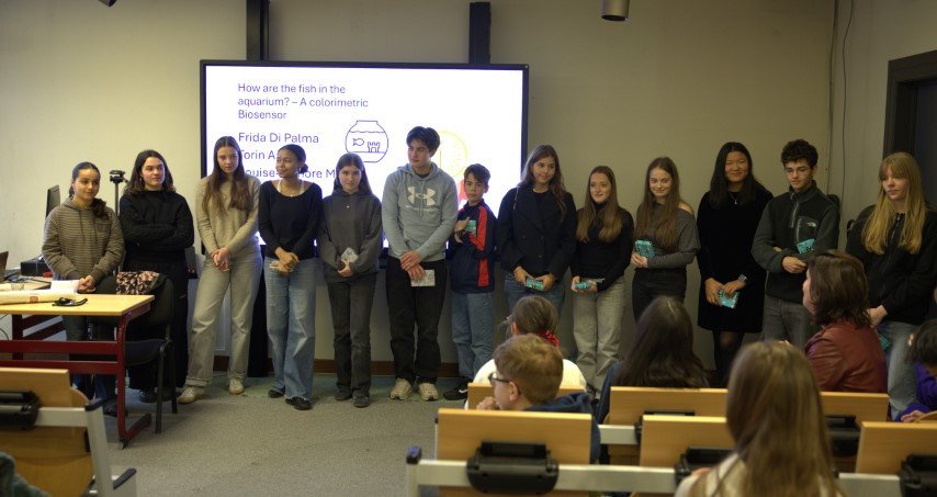 - Frida Di Palma, Rotin Aston et Louise-Eléanore Manga Horlbeck pour leur projet « Comment vont les poissons dans l'aquarium ? Un biocapteur colorimétrique"