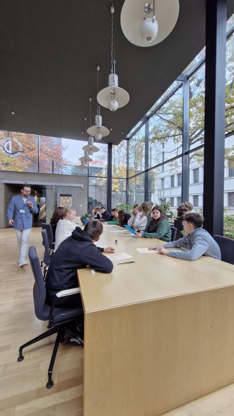 At the end of October, we gathered in Vilnius for several days. Our first stop was the M. K. Čiurlionis National Museum of Art in Kaunas. Guided through the painting galleries, we listened to fascinating stories about the origins and symbolism of the works and even tried to interpret some of them ourselves. During creative workshops, we wrote calligraphic letters in ink and designed our own symbolic drawings. A highlight for many was the virtual reality experience “The Path of Angels” and “The Creation of the World”—an immersive journey through Čiurlionis’s world of visions and sounds, where mythology, cosmos, and abstraction intertwine.