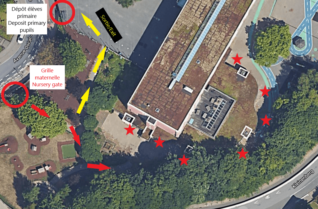 Pupils in primary should be dropped off at the main gate. Children should line up on their designated spot (please check document called "Points de rassemblement"), where teachers collect them when the bell rings.
